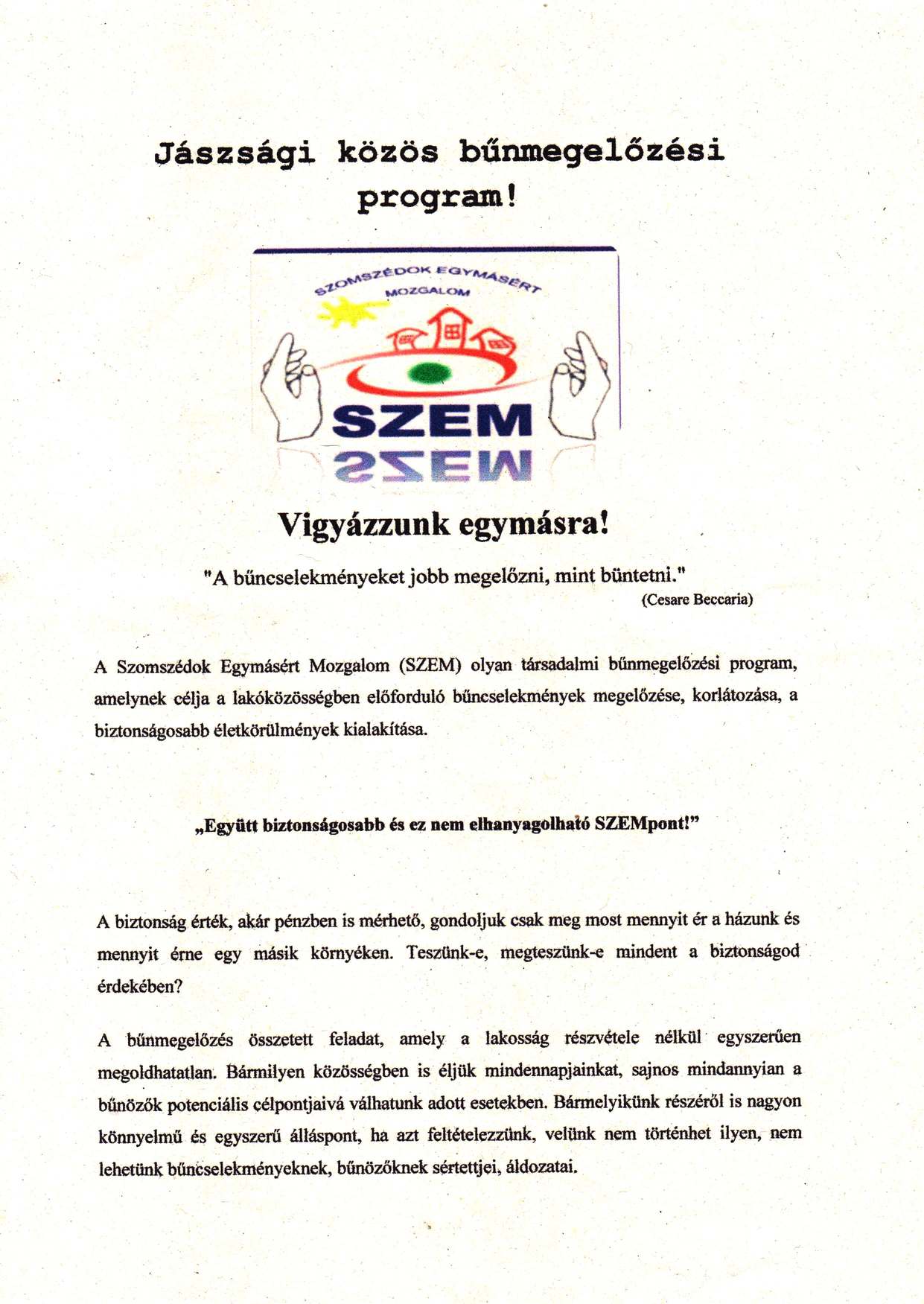 Egyesületek / Szervezetek hírei Minden önmaga és településünk biztonságáért tenni akaró jászalsószentgyörgyi lakost tisztelettel várunk, idõset és fiatalt egyaránt !